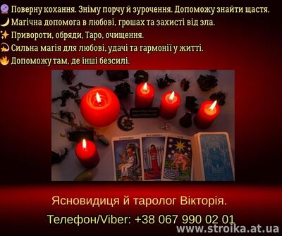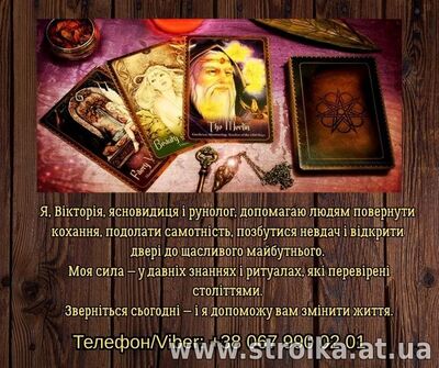 Шукаєте допомогу ясновидиці, екстрасенса, рунолога і таролога? Мене звати Вікторія, і я працюю з людьми, допомагаючи змінювати їхню долю за допомогою стародавніх знань, ритуалів і магії. Я відчуваю