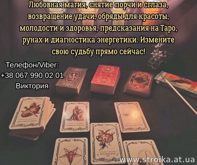 Ищете ясновидящую, таролога, экстрасенса в Киеве? Меня зовут Виктория. Я ясновидящая, экстрасенс, рунолог и таролог. Уже много лет я помогаю людям находить ответы на самые сложные вопросы, менять судьбу
